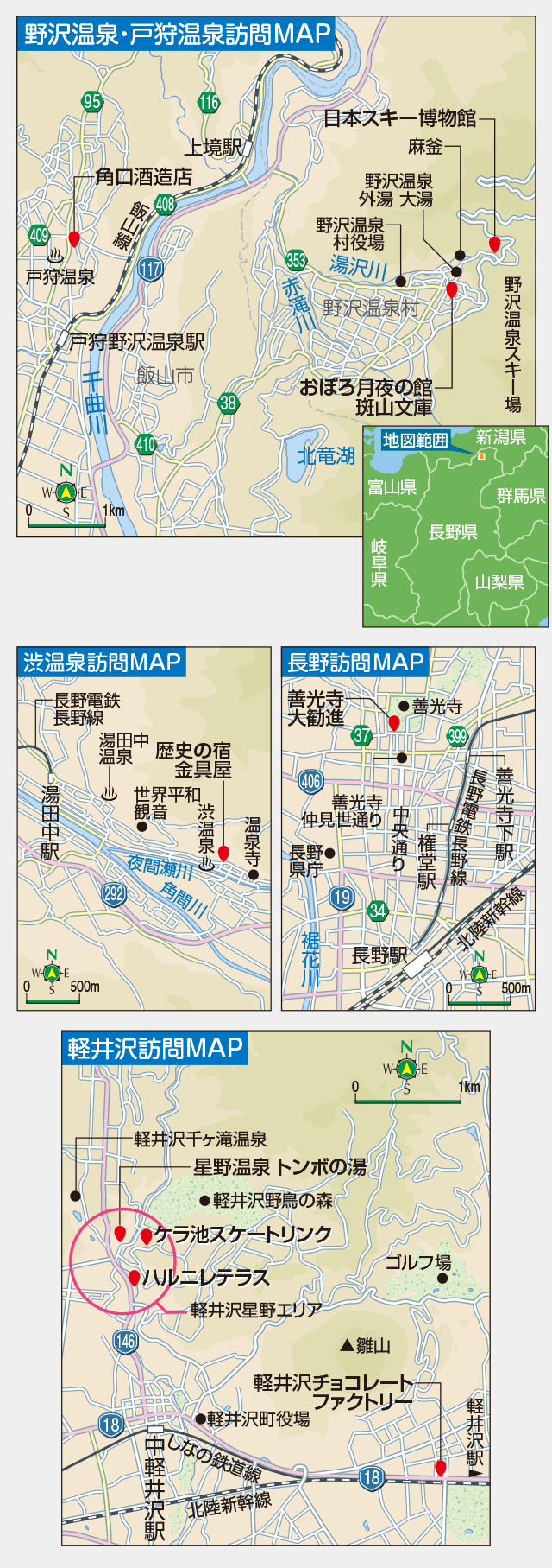 寒さを求めに3か所の温泉地と長野、軽井沢を訪れました。