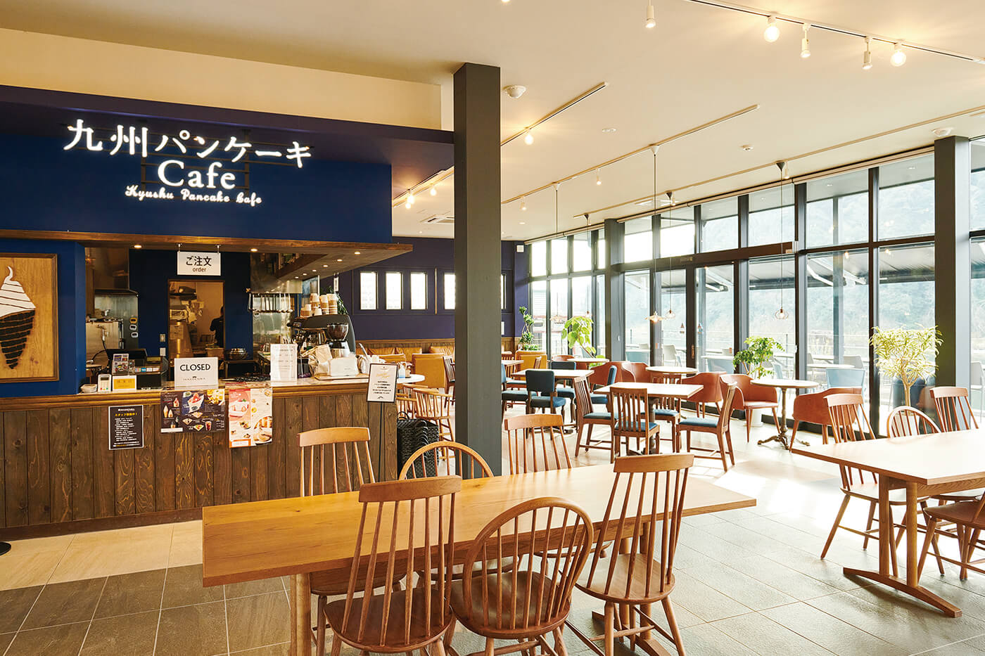 施設内には、九州産の素材を使用したパンケーキを提供する「九州パンケーキCafe」や人吉を含む球磨地方を中心に県南からセレクトした地域産品を揃える「HITO×KUMA STORE」などが入ります。復興への気概が人吉に新しい風を吹かせています。