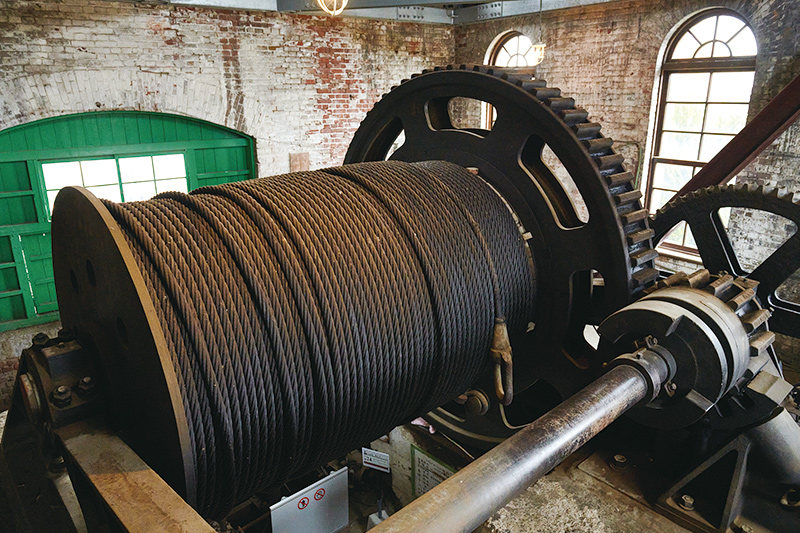 北西部に位置する荒尾市には世界文化遺産「三池炭鉱 万田坑」があります。作業員が地下と地上を行き来した坑口や巨大な機械を見学できます。トロッコや配線などは外に無造作に置かれたまま。戦前まで国のエネルギーを支えた石炭産業時代のおもかげが残っています。