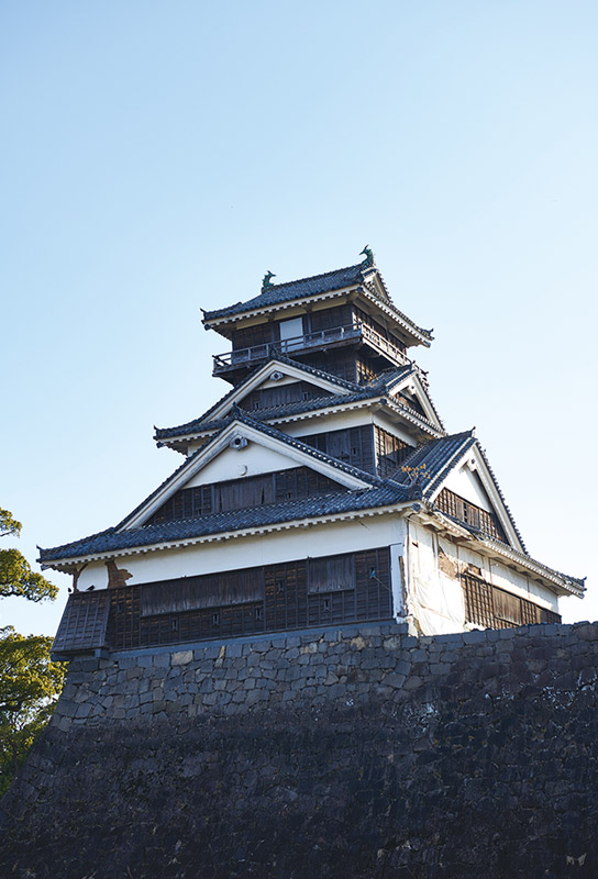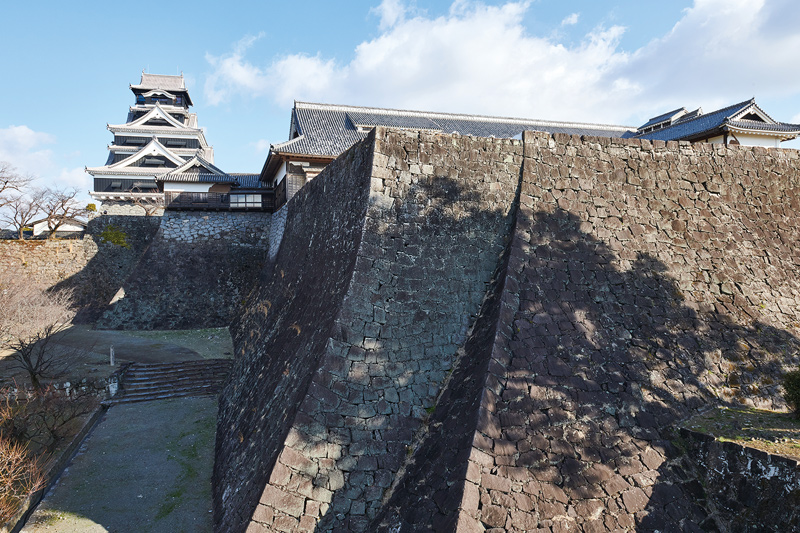 加藤清正が慶長12(1607)年に完成させ、隈本城から改名。1632年には細川忠利が熊本藩主となり、修理を行なった。