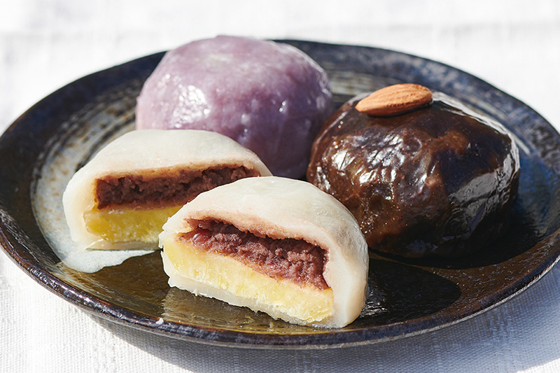 「熊本城」の近くに、バスターミナルを兼ねた商業施設「SAKURA MACHI Kumamoto」が2019年にオープンしました。飲食、アパレル、映画館など149店舗が入っており、一日中楽しめます。バスや観光案内をしてくれるALSOKが警備するくまモン型ロボットもいます。人気なのが「いきなり団子」。小麦粉の生地で輪切りのさつま芋とあんこを包んで蒸した熊本の郷土菓子です。「はなまる堂」では熊本県産の唐芋(からいも)を使用。一つひとつ手包みしており、モッチリしっとりの食感です。