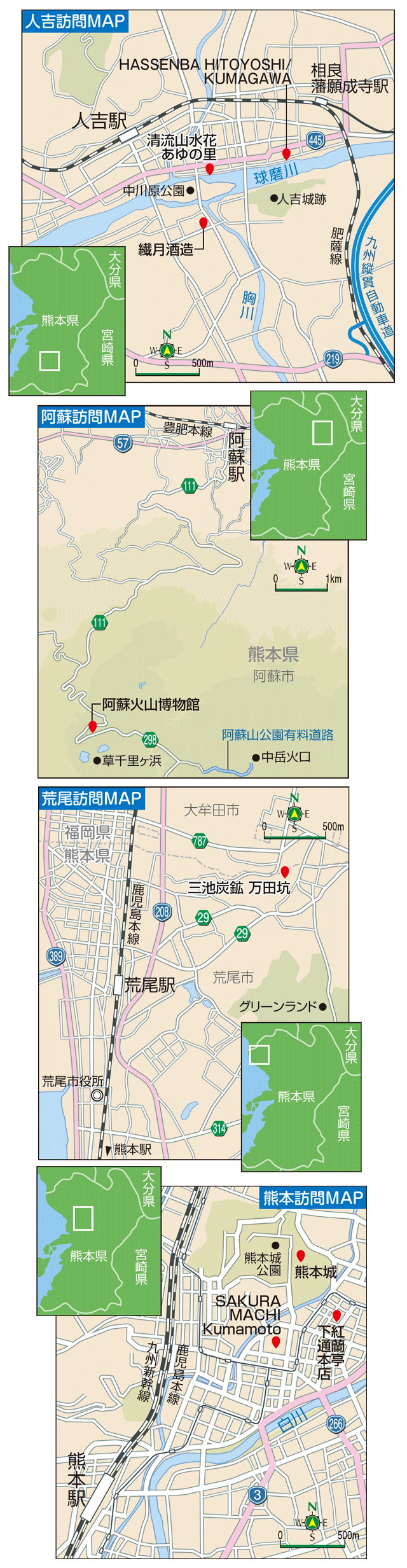 1903年創業。「繊月」は三日月のことで、人吉城の別名「繊月城」から名付けられた。創業時から蔵専属の杜氏を抱え、現在は六代目。敷地内には天然温泉の足湯もある。