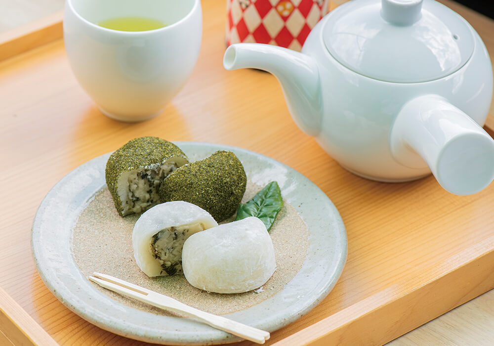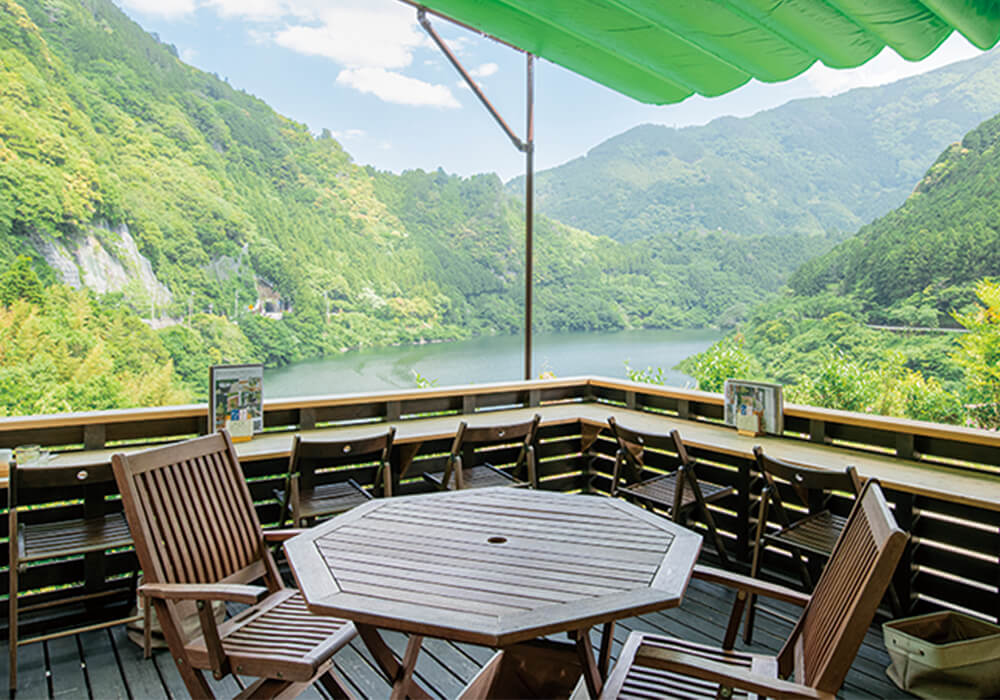 仁淀川上流域は県内一のお茶の産地でもあります。沢渡茶(さわたりちゃ)を栽培する仁淀川町沢渡地区の茶畑は、川沿いの山の急斜面に広がっています。お茶農家の岸本さんご夫婦は、この美しい茶畑の風景が後継者不足によって失われてしまうことを危惧して、15年前に祖父の茶畑を受け継ぎました。さらに「お茶への間口を広げたい」と、沢渡茶の茶葉を使った商品を開発し、2018年にはそれらの料理やスイーツを提供する「茶農家の店あすなろ」をオープンしました。沢渡茶入りのうどんやパン、クリームラテなどを口に入れると、沢渡茶のやさしい味が広がります。仁淀川を眺めながら、ゆっくりとした時間を過ごしてみてはいかがでしょうか。