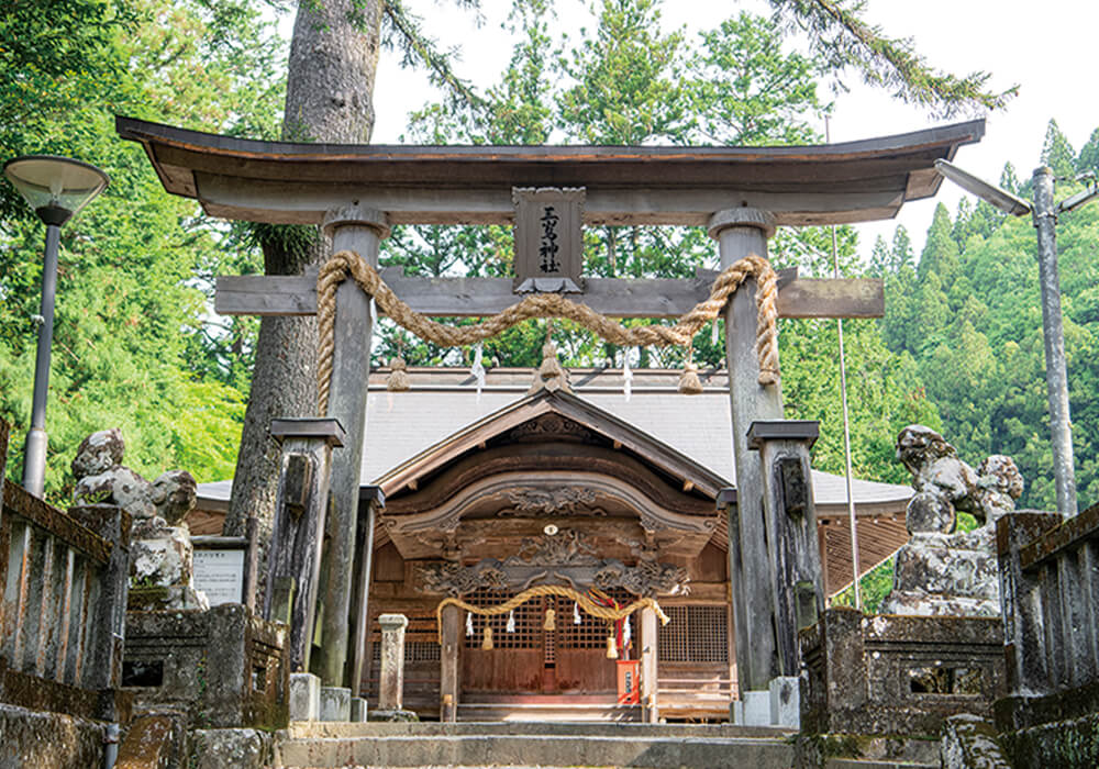 坂本龍馬が脱藩の際に無事を祈願したといわれている。また、境内には津野山郷の開祖・津野経高を祀る津野神社、ハリモミの巨木がある。
