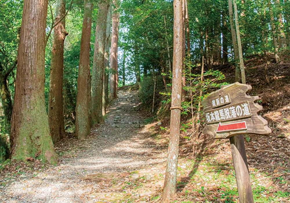 三嶋神社の境内から延びる山道。坂本龍馬が土佐藩を脱藩し、長州に向かう際に駆け抜けた。