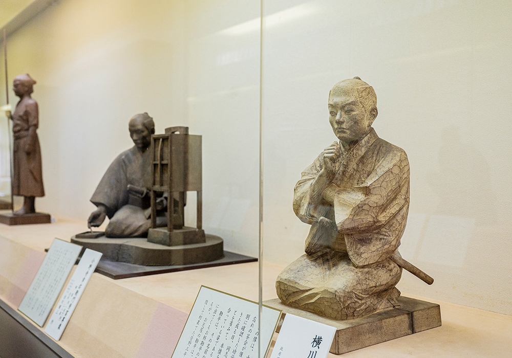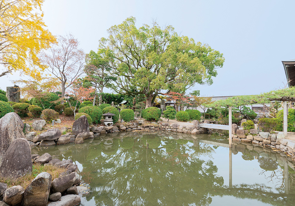 赤穂市といえば、元禄14年に起こった赤穂事件ゆかりの地です。同事件は、江戸城での刃傷事件によって切腹した赤穂藩主の浅野内匠頭長矩(あさのたくみのかみながのり)の仇を討つため、大石内蔵助(おおいしくらのすけ)ら47人の家臣が吉良上野介邸(きらこうずけのすけ)を襲撃した事件です。「忠臣蔵」として人形浄瑠璃や歌舞伎の人気演目となっています。長矩の居城だった赤穂城は城址公園となっています。公園内にある「赤穂大石神社」は、四十七義士らをご祭神として、内蔵助らの屋敷跡に創建されました。境内には四十七義士にまつわる史料館がいくつかあります。「義士宝物殿」「義士宝物殿別邸」は四十七義士の衣装や遺品などが展示してあり、必見です。圧巻なのは「義士木像泰安殿」。四十七義士像と長矩像、萱野三平(かやのさんぺい|討ち入り前に自刃(じじん)した)像の49体の木像が奉安されています。その多くが討ち入りの姿ではなく、俳句を練ったり手紙をしたためたり、物思いにふけっています。これは木彫家49人が一人一体ずつ、史実や逸話をもとに日常の姿を彫ったためです。その精巧さに感嘆し、一人ひとりに思いを馳せてしまいます。「大石邸長屋門・庭園」内には樹齢三百年以上といわれる大楠が高くそびえ立ち、神社を静かに見守っています。