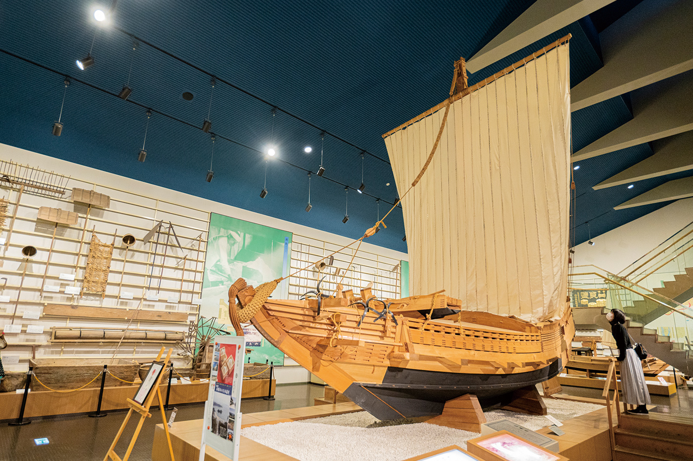 赤穂城の米蔵跡には「赤穂市立歴史博物館」があり、赤穂義士にまつわる資料や映像を見られます。また、赤穂市は古くから塩の産地として栄えたため、製塩や塩の流通など、塩にまつわる展示も並びます。江戸時代に、潮の干満差を利用して海水を塩浜に送る入浜式塩田(いりはましきえんでん)という方法が完成し、製塩はこの地の一大産業となりました。入浜式塩田の模型を見ていると、いかに優れた方法だったかがわかります。