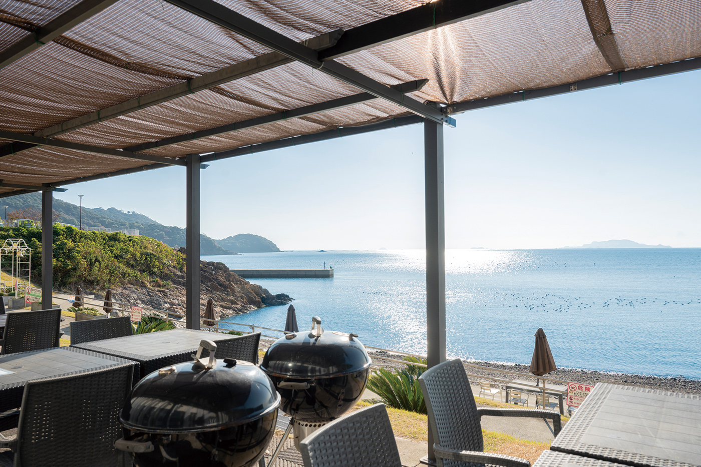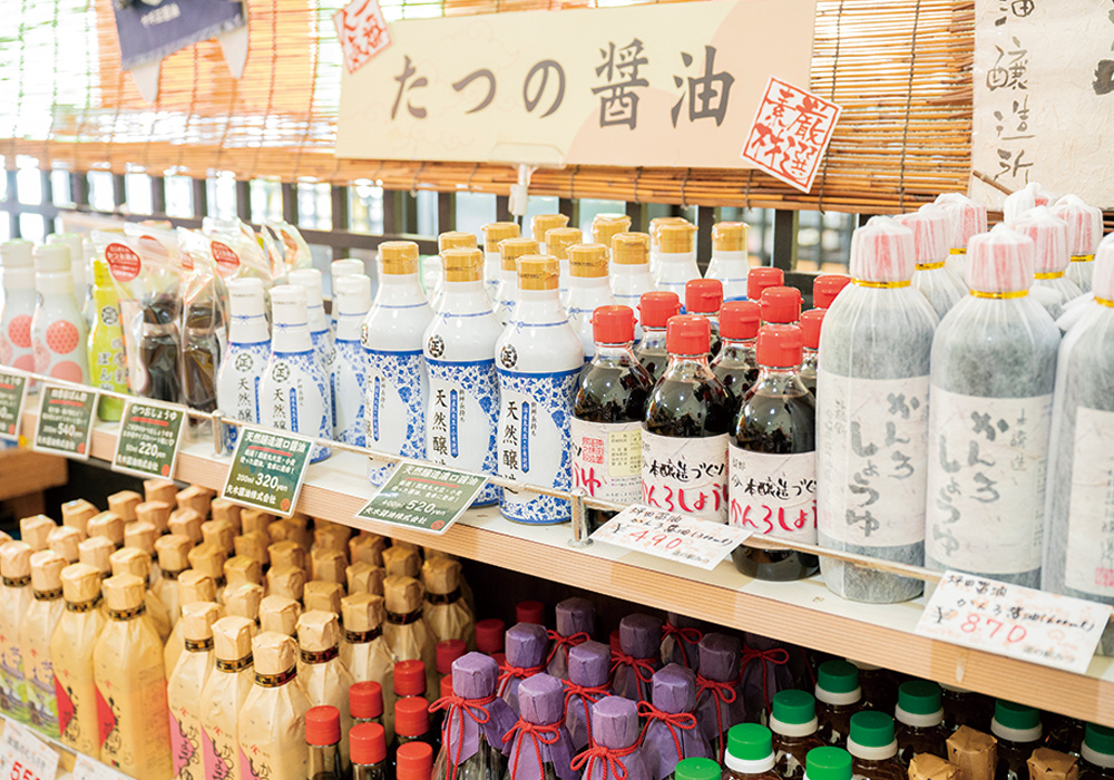 お土産選びに立ち寄りたいのが、たつの市にある「道の駅みつ」。瀬戸内海の播磨灘に面した絶好のロケーションです。「お土産コーナー」に揖保川の水と赤穂の塩を使ったたつのの名品・淡口醤油や、道の駅のオリジナル商品「牡蠣ポン酢」などが並びます。「とれとれ直売所」には室津漁港など瀬戸内海で獲れたばかりの魚介類がずらり。その新鮮な魚介を使ってバーベキューもできます。屋上デッキやテラスで瀬戸内海を眺めながらいただく海鮮は最高です。