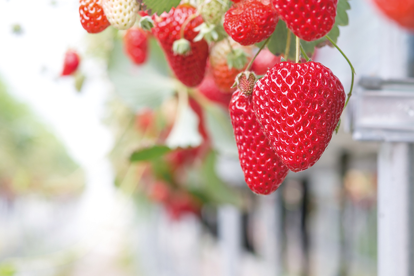 この季節は「姫路ハートフル観光農園」でのいちご狩りもおすすめです。農薬を減らし味の深みを増やすため、漢方薬を使用して栽培しています。地面より高い位置に棚を組む高設(こうせつ)栽培なので、立ったままいちご狩りができます。どの品種も「魔法のいちご」と呼ばれるほど甘く育ち、一口食べたらとりこになります。