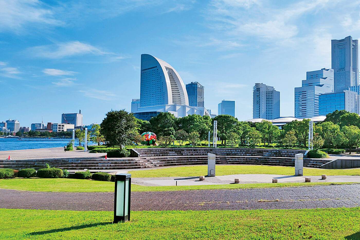 パシフィコ横浜に隣接する、みなとみらい地区最大の緑地。市民の憩いの場であり、天気のよい日は多くの人がピクニックや散歩に訪れる。海沿いの道は横浜港に停泊する客船やベイブリッジが一望でき、開放感満点。