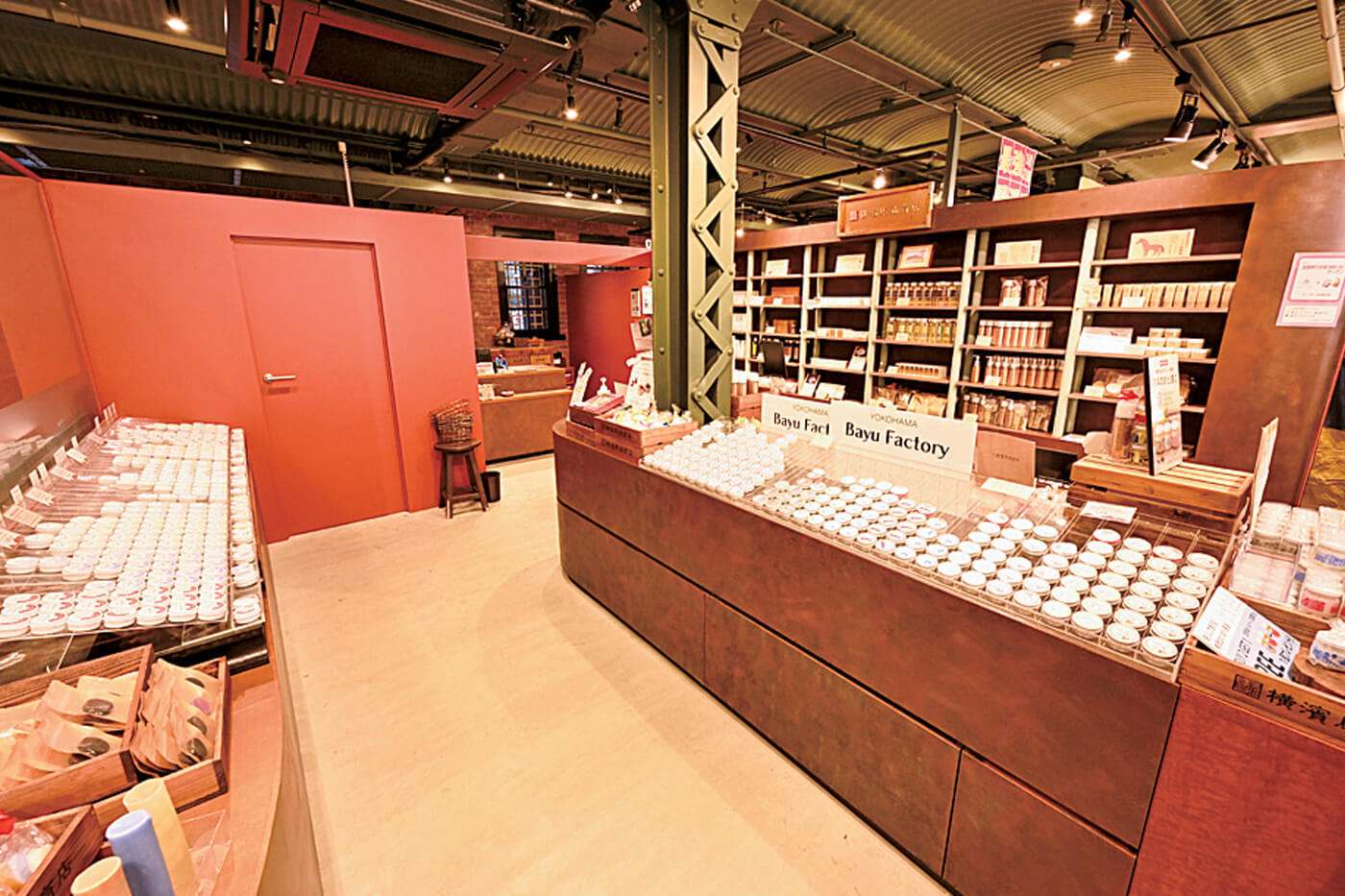 次は足をのばして、横浜赤レンガ倉庫へ。赤レンガ倉庫では昨年、半年に及ぶ大規模改修工事が行われました。館内の様々な箇所が改修されたほか、新規出店25店を含む66店が揃い、ソフトもハードもアップデートされています。館内で見つけたユニークな店が、馬油を使ったスキンケア商品を扱うBayu Factory YOKOHAMAです。店頭にはかわいい缶に入ったバームが勢揃い。ラベンダーやイランイランなど18種類の香りが楽しめ、「持ち歩ける馬油」として人気を集めています。お店の方は「かつて、馬油はべたつく、臭いといわれましたが、今は精製方法の進化により、匂いもなく軽い使い心地で、若い世代にも注目されています」と話してくれました。