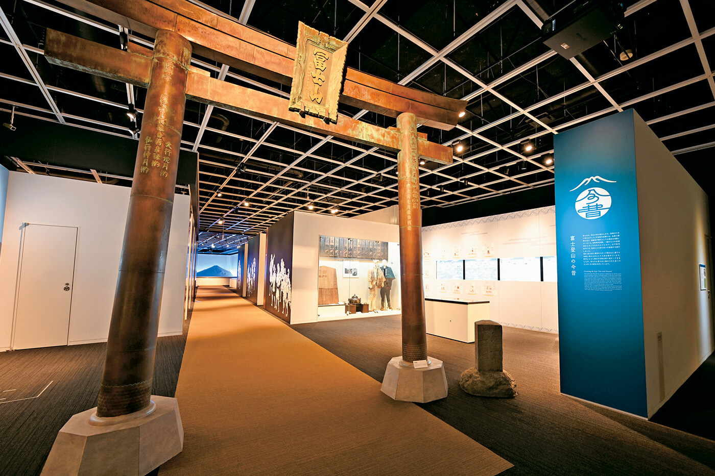 「人はなぜ富士山に登るのか」。ふじさんミュージアムのVRシアターでは、根源的な問いから始まる、迫力の映像が楽しめます。360度の壁と床に富士山の森、登山道や山頂が映し出され、富士登山に挑戦したことがない人も、その雰囲気をリアルに感じることができます。館内には富士登山の歴史に関する展示も多く、江戸時代に富士山信仰が広まった背景や庶民が富士登山に出かけた「富士講」の仕組み、登山者を自宅に宿泊させ、祈祷や登山の世話をした「御師(おし)」についても紹介しています。