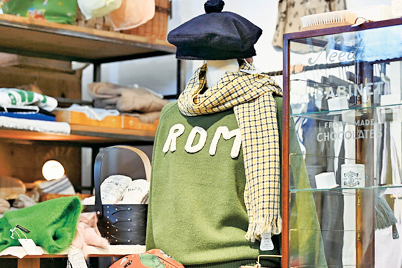 下吉田の「富士みち」沿いにある本町の商店街は、正面に富士山が見られることから、SNSで人気に火がつきました。この商店街で立ち寄ったのが「LONGTEMPS」です。1934(昭和9)年に家具店としてスタートし、現在は家具とインテリア雑貨、洋服などを扱っているとのこと。特にイギリス、北欧のアンティーク家具やヴィンテージ家具の中には、リーズナブルな掘り出しものが多いため、わざわざ遠方から買いに来る方もいるそうです。また、富士吉田は繊維業が盛んなため、地元のファクトリーブランドの商品も充実しています。1点ものの洋服やリネン類、布小物などおしゃれな商品ばかりで、雑貨好きにはたまらない空間です。