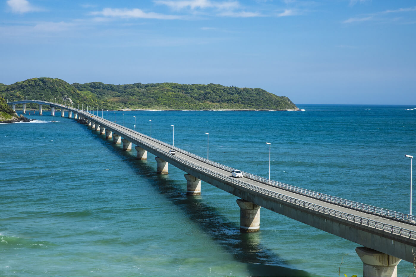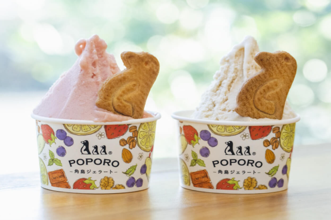 コバルトブルーの海に映える全長1780mの「角島大橋(つのしまおおはし)」。車で走っていると、滑走路から青空に飛び立つ飛行機に乗っているかのようです。その先にあるのが「角島」。周囲約17km、人口約700人の島に、絶景を求めて多くの旅行者が訪れます。 橋の本土側、すぐ近くにあるのが地元の人気店「角島ジェラートPOPORO」です。店内には色とりどりのジェラートが並び、目と舌を楽しませてくれます。 「地産地消でフレッシュな味を届けたくて。ジェラートを通して少しでも地域の風を感じてもらえたら」と、専務の秋枝俊充さん。山口県の「美味しいもの」を使ったジェラートは、オリジナリティあふれる品揃えです。地元産の青のり、柚子味噌、刺身醤油などユニークな素材から生まれたフレーバーは、驚きと新発見の連続でした。