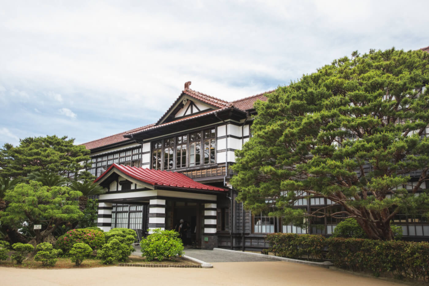 次は少し足を延ばして、萩へ。幕末から明治維新にかけて多くの優秀な人材を生み出した萩藩の背景には、「萩藩校明倫館」の存在があります。のちに移転拡充した約5万㎡の敷地内には、学舎、修練場などがあり、かの吉田松陰も教鞭を執ったといいます。その跡地に建ち、近年まで明倫小学校として使われていた校舎は萩の観光起点「萩・明倫学舎」としてリノベーションされました。藩校の貴重な遺構と、最大級の木造校舎を見学し、激動の歴史に思いを馳せました。