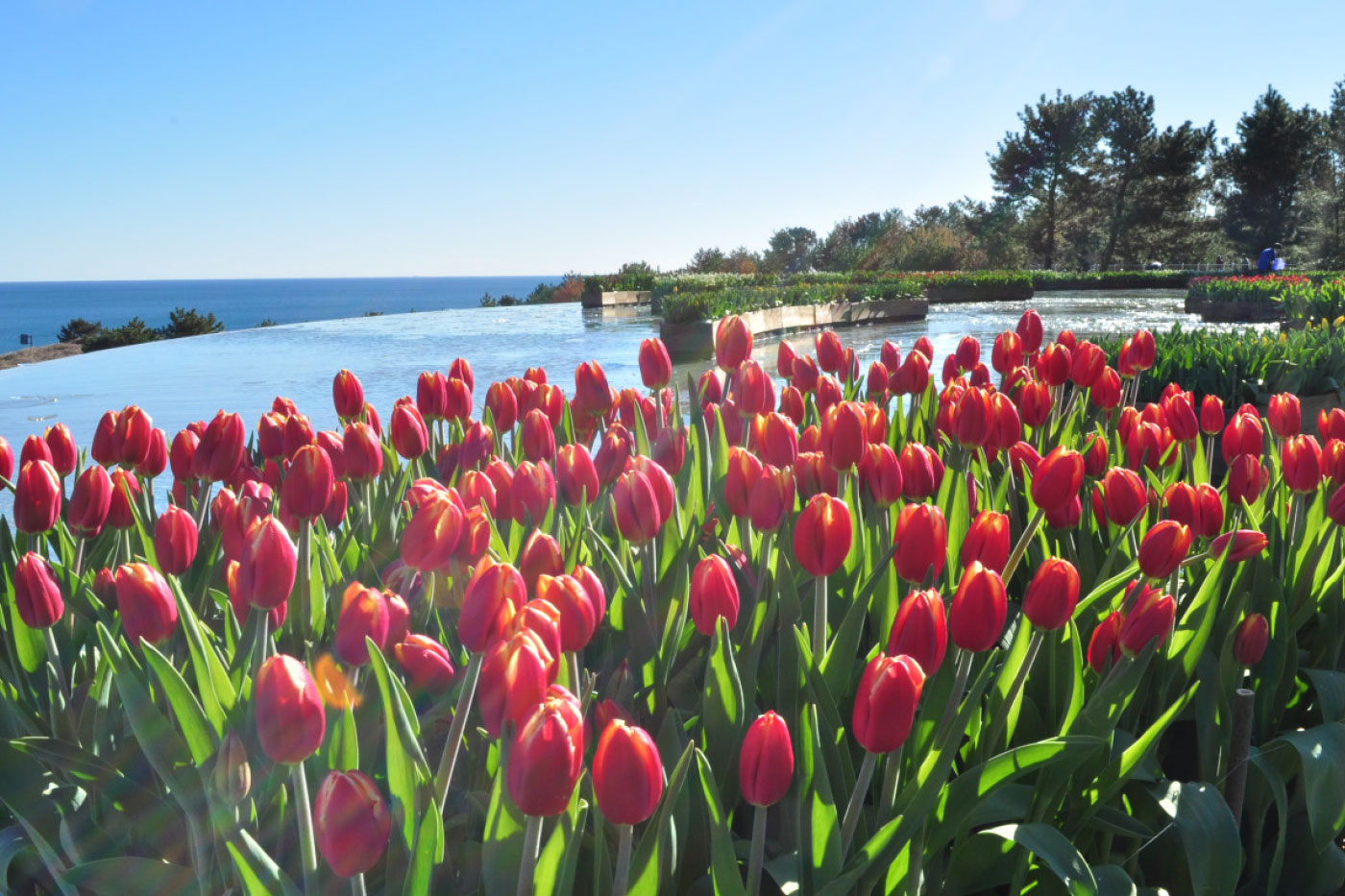 水戸市の北東にはひたちなか市が隣接しています。「国営ひたち海浜公園」にも立ち寄ってみました。開園面積約215ヘクタールもの広大な敷地を四季折々の草花が彩り、冬でも色鮮やかな花を楽しめます。アイスチューリップやロウバイ、福寿草など、中には、春を告げる花々も見ることができました。