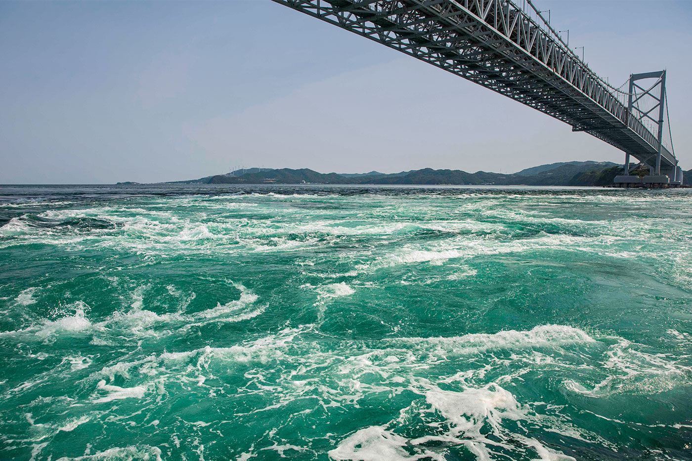 轟音とともに時速20キロで渦が巻かれる「鳴門の渦潮」。潮の干満や地形などが複雑に絡み合って神秘の自然現象が起こる。