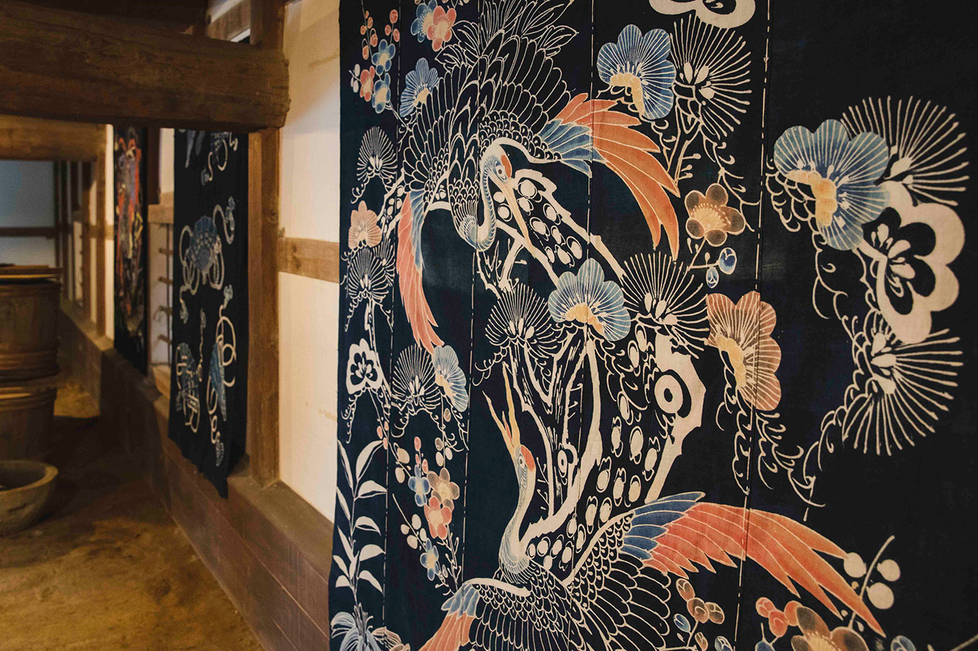 「暴れ川であった吉野川は流域に甚大な被害を与えた反面、藍の栽培に最適な肥沃な土壌をもたらしました」と、館長の三谷芳広さん。阿波藍染の要となる「蒅」づくりだけで約100日間。そこから染め液にする「藍建て」の工程を経て、やっと染色可能な状態になるといいます。