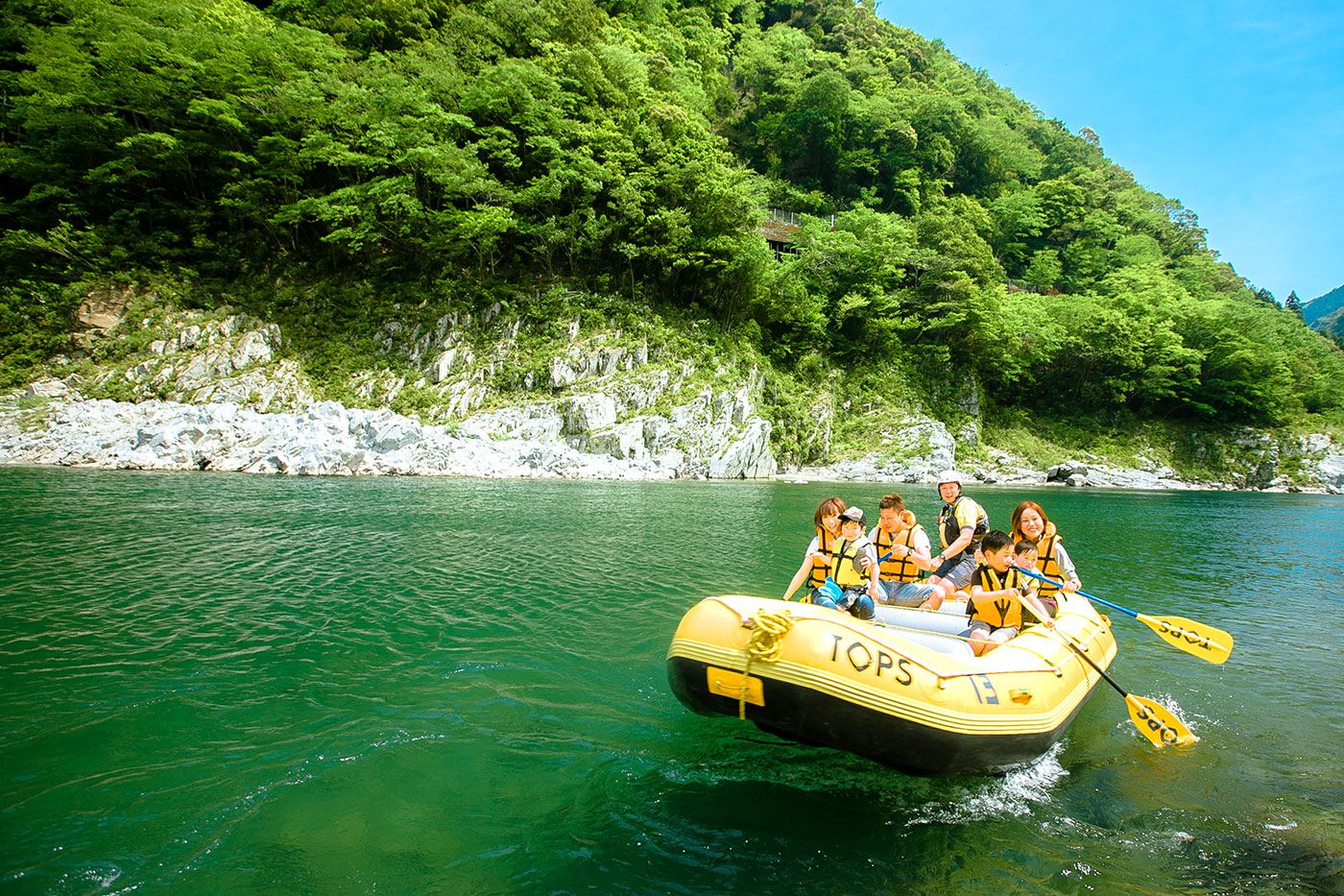 四国のへそと呼ばれる三好市。吉野川の激流によって削られた深い渓谷が美しい景観をつくっています。「大歩危・小歩危」は、リバーアクティビティの聖地。2017年にはラフティングの世界選手権が行われました。