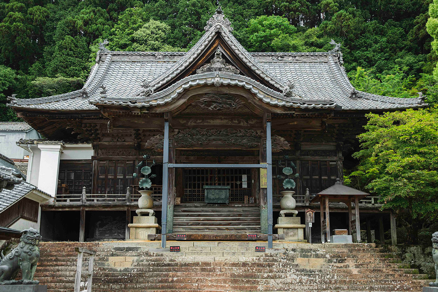 箸蔵山ロープウェイは約4分の空中散歩で、山頂の箸蔵寺までの全長950メートルを結んでいます。窓越しに眼下に広がる吉野川を眺めながら、厳しさや豊かさをもたらしてきたこの川が、今も昔も徳島の人たちの暮らしとともにあり、″心のふるさと”のような存在なのだと実感する旅の締めくくりとなりました。