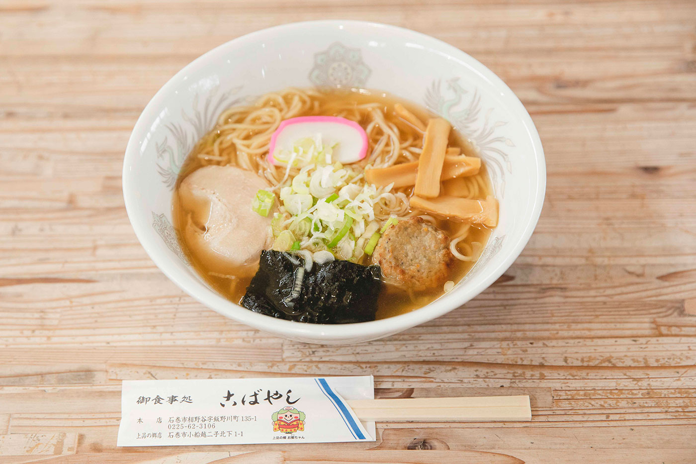 石巻市の北部、田園風景に溶け込むように佇む「道の駅 上品の郷」へ。施設内に足を踏み入れるとオープンから20年が経った今でも、杉独特の芳しい香りが漂ってきます。地元産材を使った「杉格子構造建築」が見事です。直売所では旬の農産物を中心に地元生産者の商品が並びます。地場産食材にこだわったフードコートでのイチオシは石巻名物「サバだしラーメン」です。販売課係長の戸村将斗さんは、生みの親のひとり。震災からの復興をテーマに地元企業と開発した渾身の一杯に、当時ゼミ生として関わりました。