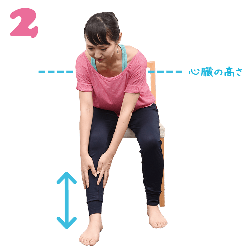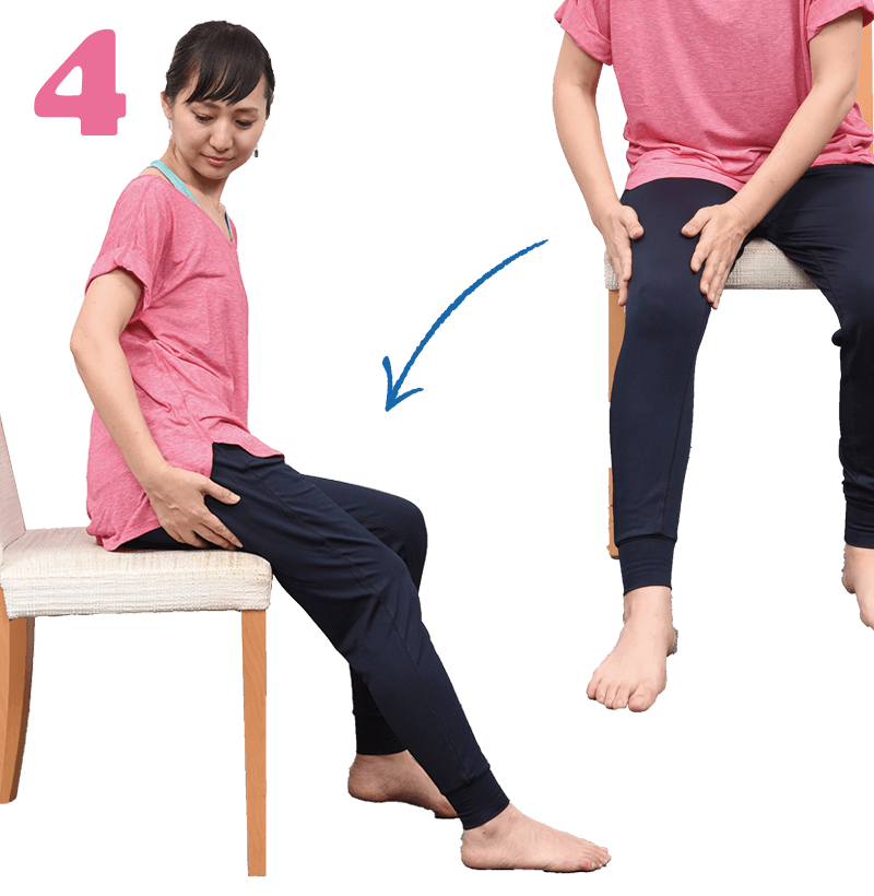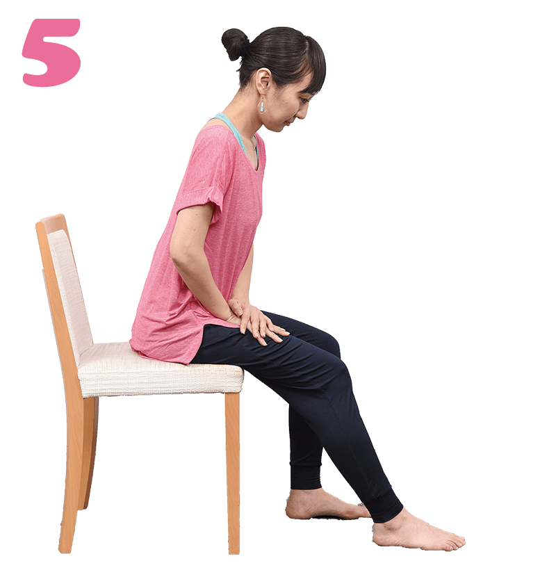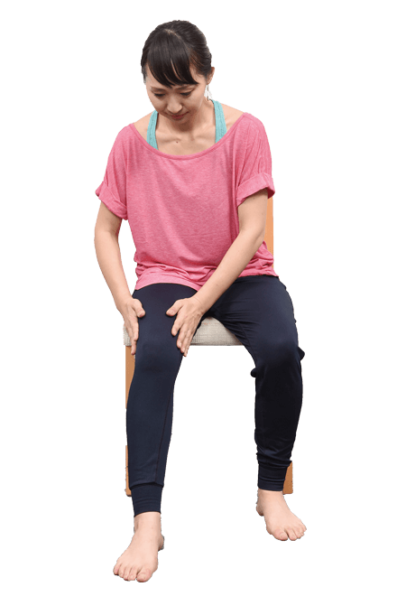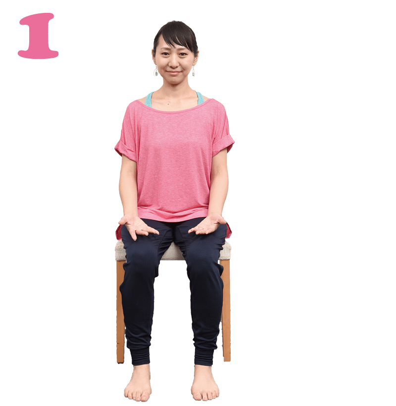 - 足の裏がしっかり床に着くよう、座面に浅く腰かけます。