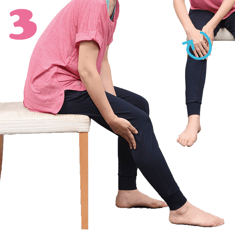 くるくると円を描くように膝のお皿をさすります。
