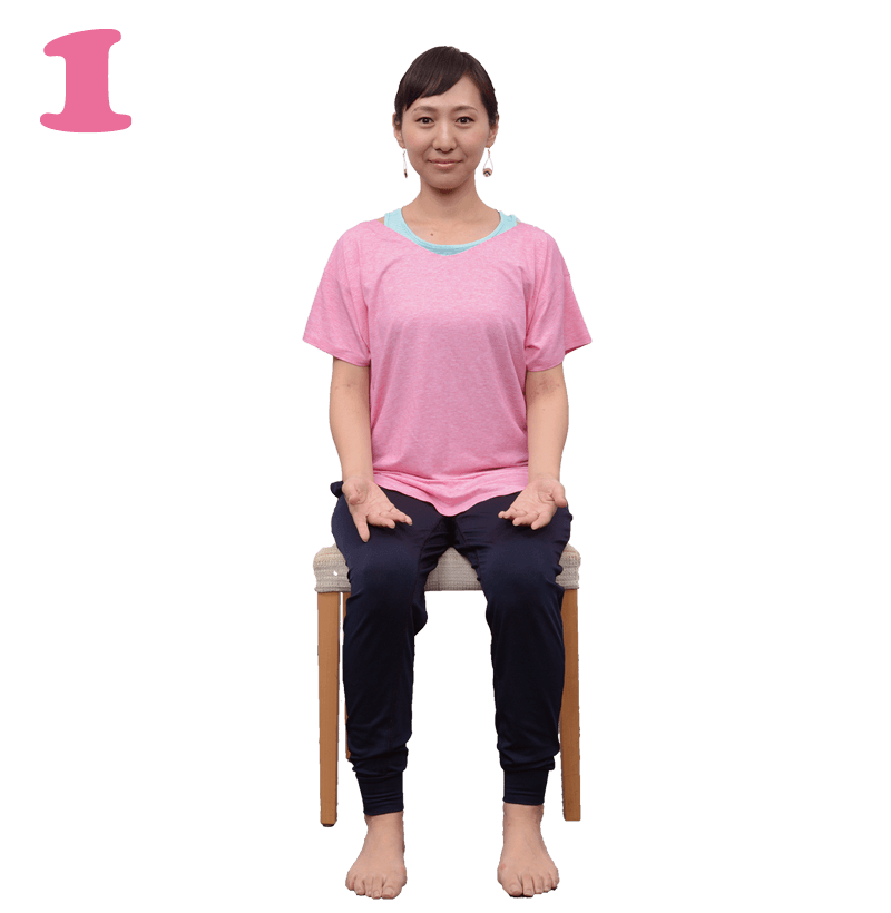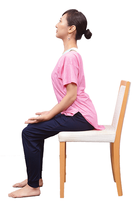 - 足の裏がしっかり床に着くよう、座面に浅く腰かけます。