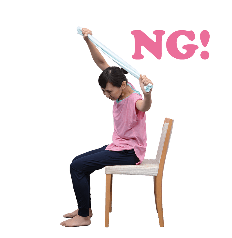 - 足の裏がしっかり床に着くよう、座面に浅く腰かけます。