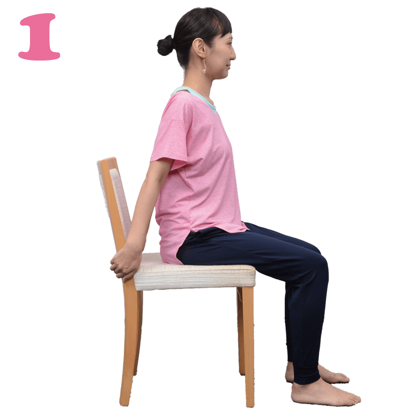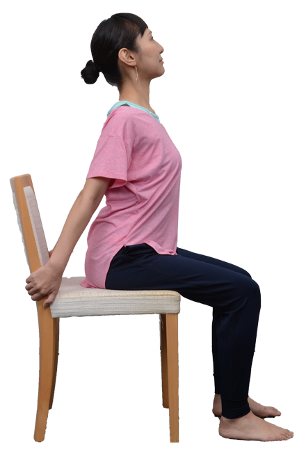 - 足の裏がしっかり床に着くよう、座面に浅く腰かけます。