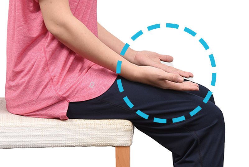 肩や腕がつらい方や腰痛がある方は、両手をヒザに置いたまま行いましょう。