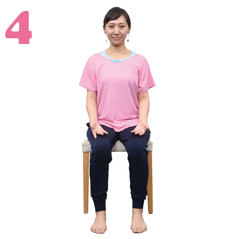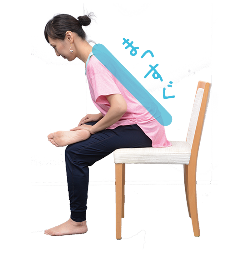 - 足の裏がしっかり床に着くよう、座面に浅く腰かけます。