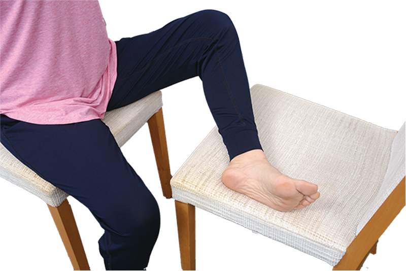体が硬い方やひざの上に足をのせるのがお辛い方は、対面に椅子を置き、座面に足をのせます。