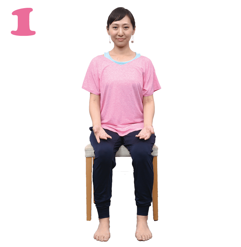 - 足の裏がしっかり床に着くよう、座面に浅く腰かけます。