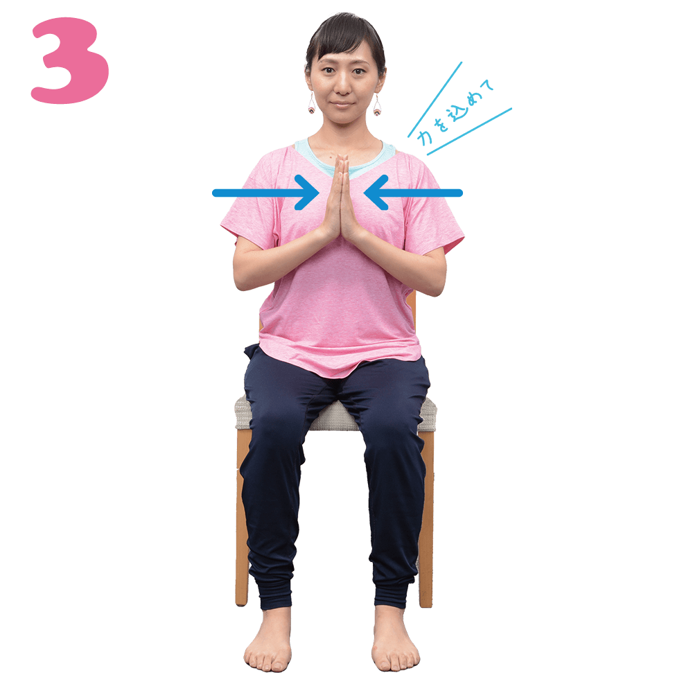 息を吐きながら合わせた手のひらと手のひらを力を込めて押し合います。