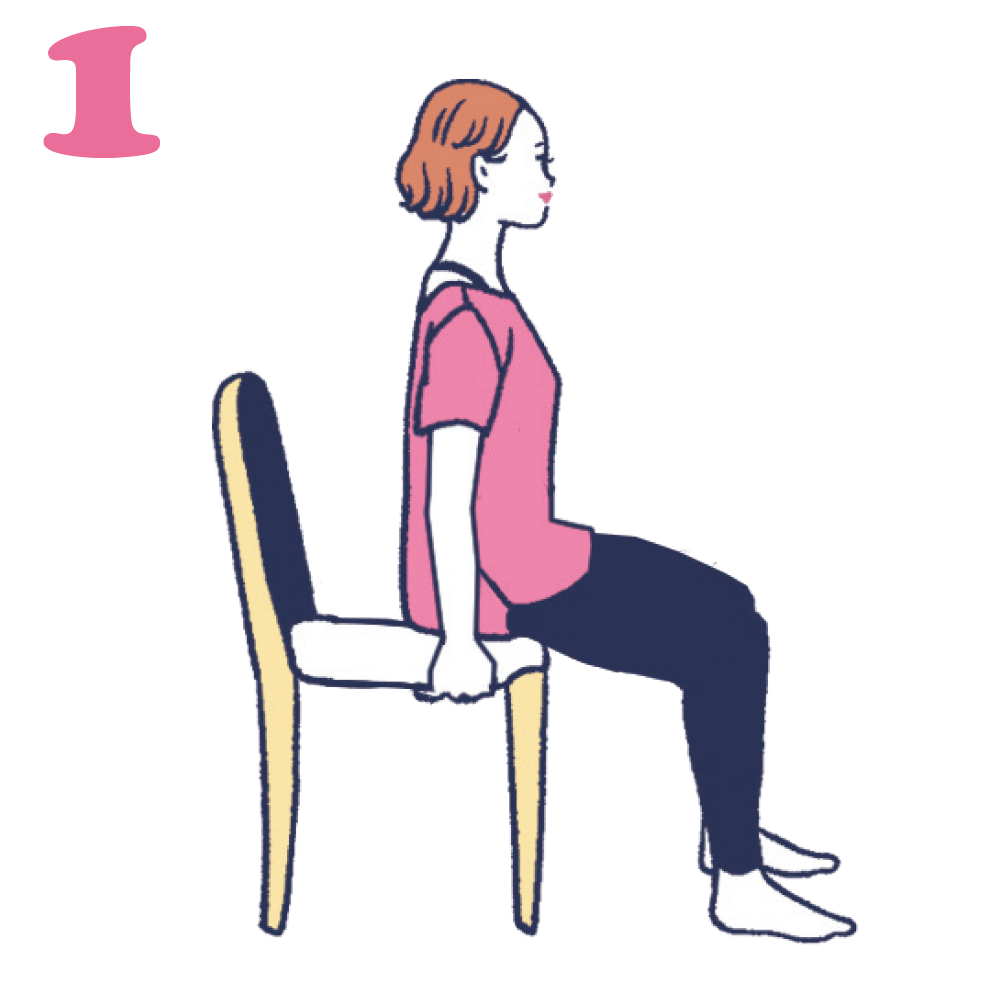 背筋を伸ばし、両手で座面の側面をつかみましょう。