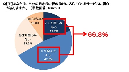 一方で、自分の代わりに親の助けに応じてくれるサービスにも、66.8%の方が関心があると回答しています。