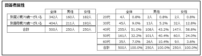 調査対象:70歳以上の自分の親と別居している東京・神奈川・千葉・埼玉在住の男女500人