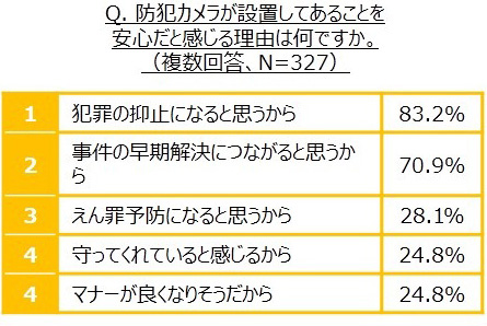 これは、街頭や繁華街に設置された防犯カメラが、様々な事件で犯人の特定や逮捕に貢献していることが広く報道されているためと思われます。