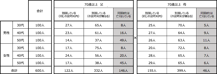 調査対象:70歳以上の親と別居している30代から50代の全国の男女600人