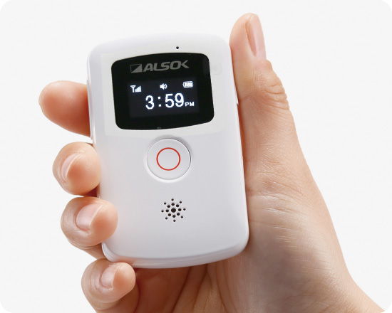 ご高齢者の転倒や徘徊、女性・子どもの連れ去りなどから大切な人を守る、通話機能・安否確認機能付きのモバイル端末です。ご高齢者の位置情報を確認し、必要に応じてALSOKのガードマンを現地に急行させることができます。