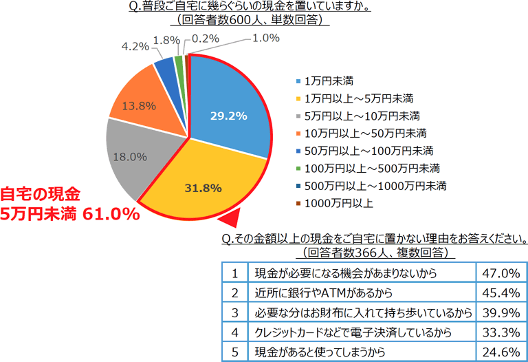 自宅に置いてある現金、「5万円以下」が6割