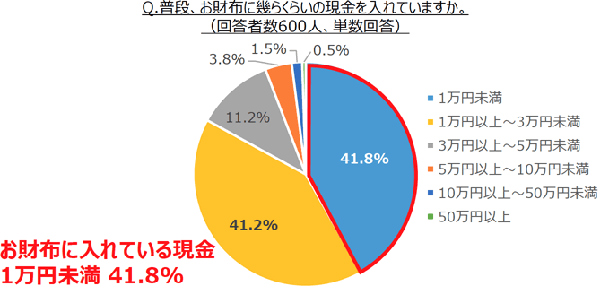4割の人は、お財布にも1万円以下しか現金を入れていない
