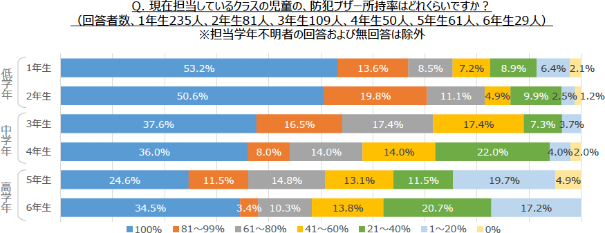 防犯ブザーの所持率は学年が上がるとともに減少