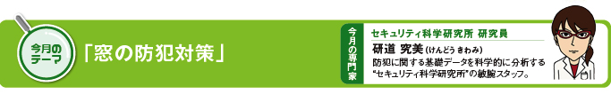 まずは、警察庁発表の「平成23年上半期の犯罪情勢」から、侵入窃盗の発生場所別の侵入口・侵入手段を見てみましょう。一戸建住宅の侵入窃盗の認知件数の総数23,131件のうち、窓からの侵入は13,593件にも上り、これは玄関やその他の出入口に比べても圧倒的に多い結果になっています。さらに、侵入手段を見ると、最も多いのが8,113件のガラス破り。そして、4,443件の無締り、590件のその他、156件の戸外しと続きます。このように、窓のガラスを無理やり破って住居に侵入するケースや鍵をかけていない窓から侵入するケースが多いことから、窓を強化することが防犯の重要といえるでしょう。