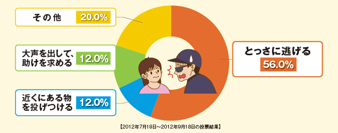 家の中で不審者と鉢合わせをしたら、半数以上の56.0%が「とっさに逃げる」と判断