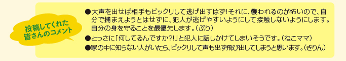 犯人と対面したときは、自分で解決しようとしない! 外に出て大声で助けを呼ぶこと